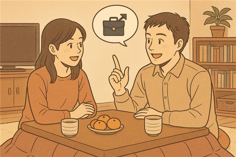 夫婦間では、普段は「今日仕事どうだった~?」くらいの軽い会話しかしないので、キャリアについて話す夫の声がちょっと新鮮で、つい耳をそばだててしまいました。